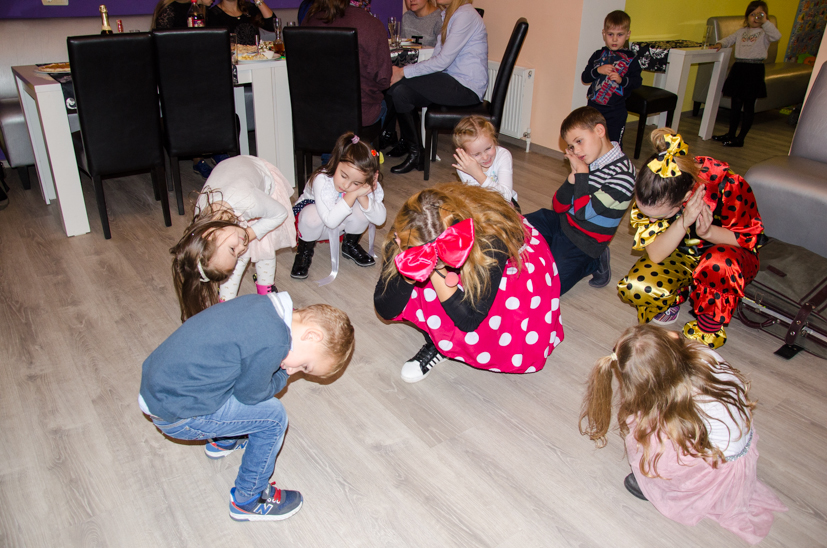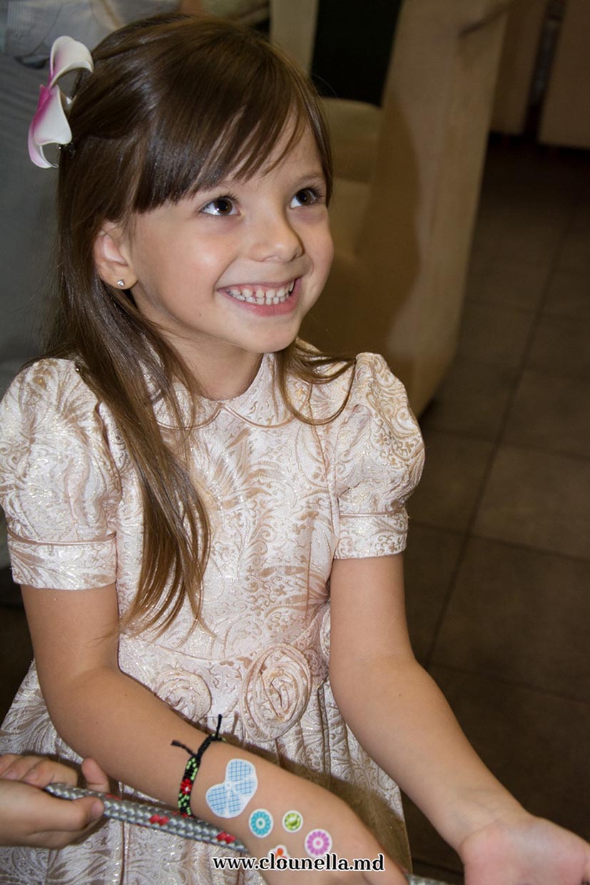 Sincer, la început aveam dubii, vârsta copiilor îmi părea prea mică pentru a le capta atenţia, dar pâna la urma chiar şi cea mai mică, de fapt eroina principală a sărbătorii, a fost absorbită totalmente de atmosfera veselă. Bravo Clounella, a fost foarte simplu să colaborăm.